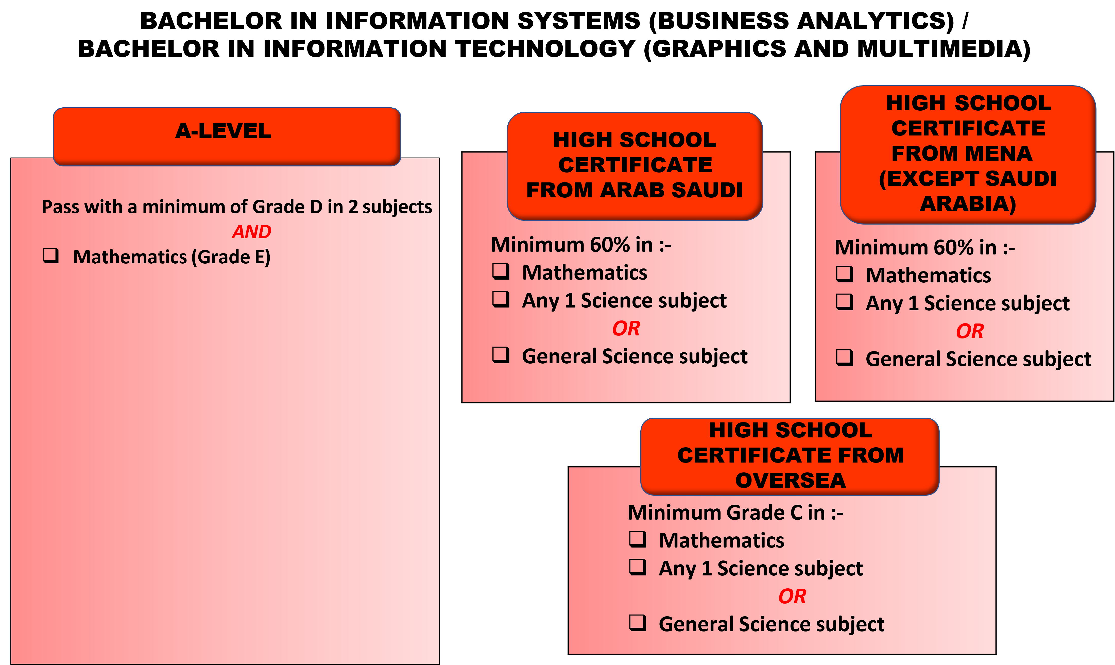 This programme integrates information technology with business intelligence to equip students with strong analytical and data-driven decision-making skills. Students will learn to manage information systems, analyse business data, and develop strategic solutions that enhance organisational performance in the digital era.