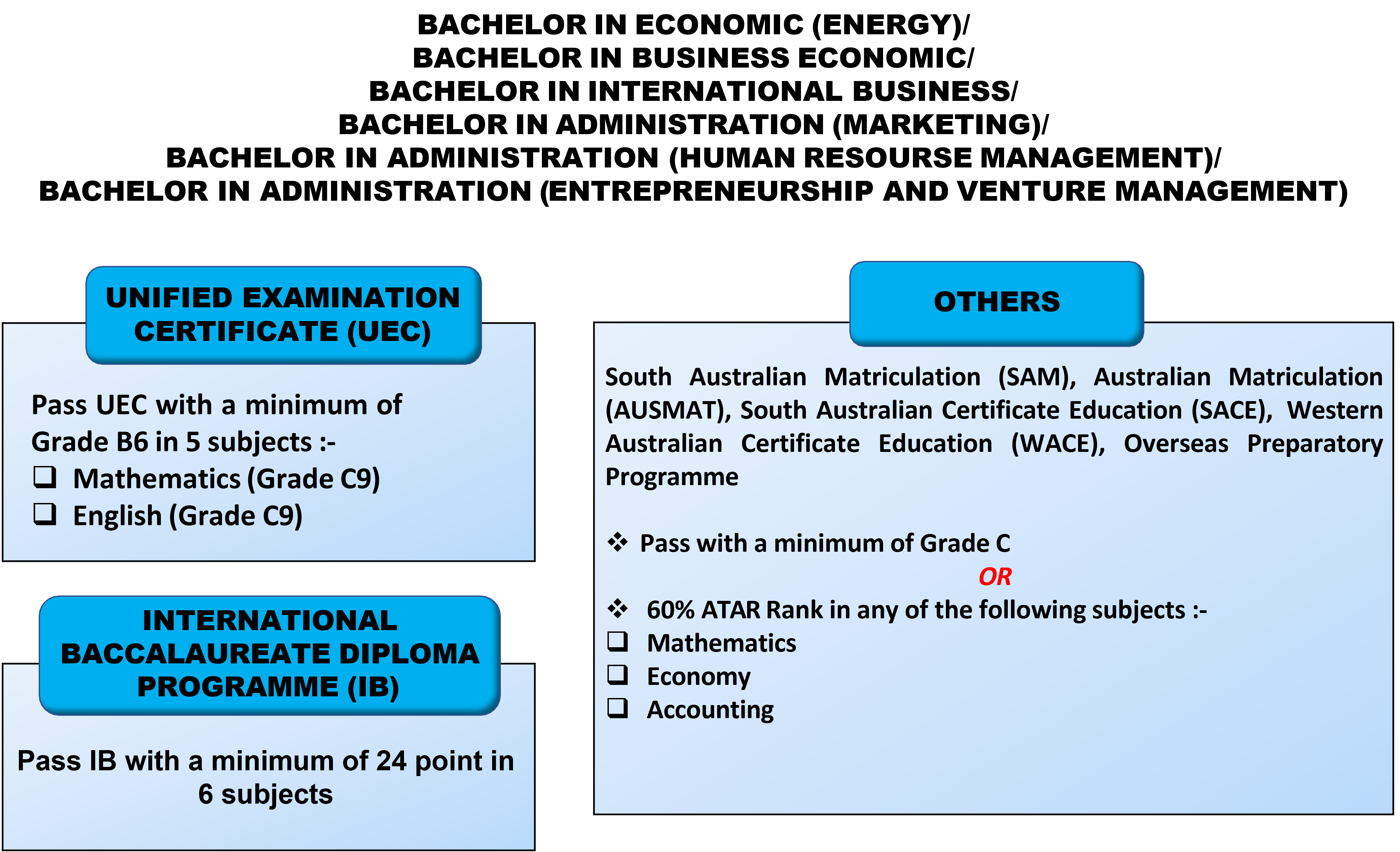 This Bachelor in International Business (Honours) programme, offered by the Department of Management under UNITEN Business School, is designed to meet the expectations of both local and global industries. It equips students with essential business and management skills, language competence, and cultural awareness necessary for success in today’s international business environment.